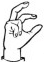 На ћирилици написано КЛАУДИЈА ЛАЗАРЕВИЋ састоји се из 17 слова [?]. Исписано ћириличном једноручном азбуком за глувонеме: